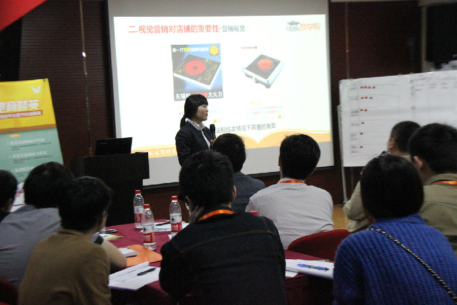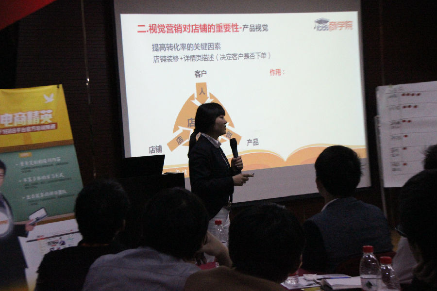 第一節(jié)課程是:《視覺(jué)決勝營(yíng)銷》。第一堂課大家的積極性就已經(jīng)很高,回答老師的問(wèn)題也是非常積極活躍,現(xiàn)場(chǎng)氣氛熱烈而又融洽。姜麗萍老師憑借自己多年從事電子商務(wù)行業(yè)的專業(yè)視角和豐富的實(shí)戰(zhàn)經(jīng)驗(yàn),給大家?guī)?lái)了很多實(shí)實(shí)在在的干貨,大家在整個(gè)課堂上聽(tīng)得全神貫注,并且?guī)еJ(rèn)真學(xué)習(xí)的進(jìn)取心踴躍舉手提問(wèn)題。在最后一個(gè)環(huán)節(jié),老師還抽出現(xiàn)場(chǎng)一位同學(xué)的店鋪?zhàn)隽朔治觯⑶医o出自己非常專業(yè)的指導(dǎo)和很多寶貴的建議。這位同學(xué)真是賺大了!